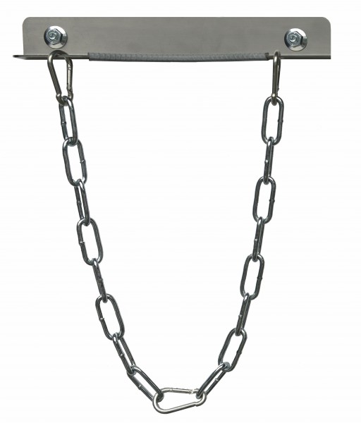 Cylinder rack Vulkan Modula for securing gas cylinders against tipping. Fully stainless steel construction with wall fixture, chain with snap hook, and edge protection. For 1 cylinder. Width: 280 mm.