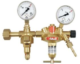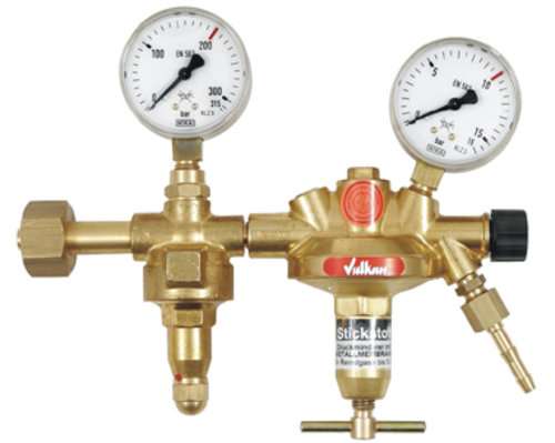 Vulkan F10/200 Effect compressed air cylinder pressure reducer DIN 477-1, 0-10 bar according to ISO 2503 with pre-pressure compensation for constant back pressure under all operating conditions, single-stage design, with shut-off valve, with safety pressure gauges according to DIN EN ISO 5171, maximum inlet pressure: 200 bar, outlet pressure: 0-10 bar adjustable, maximum output: 48 Nm³/h compressed air at 10 bar back pressure. Inlet: G 5/8 RHaf connection screw according to DIN 477-1 No. 13, Outlet (optional special outlet): G 1/4 RHk x 6 mm nozzle according to EN 560, input pressure gauge: 0-315/200 bar, output pressure gauge: 0-16/10 bar, width x height x depth: 210 x 190 x 75 mm. This cylinder pressure reducer is available in the following versions, among others: Gas purity/membrane: Standard:- for technical gases up to a gas purity of 4.5 with standard membrane Optional (surcharge):- for pure gases up to a gas purity of 5.0 with stainless steel membrane SS321 (1.4541) Special outlet screw connection: Standard:- G1/4 RHk x 6 mm nozzle according to EN 560 Options (surcharge): Item numberGas purityOutlet connection 207005 for technical gases up to 4.5, with standard membrane Hose nozzle G1/4" RHk x 6mm 207005-812 for technical gases up to 4.5, with standard membrane Hose nozzle G3/8" RHk x 9mm 207005-800 for technical gases up to 4.5, with standard membrane External thread G1/4" RHk according to EN560 207005-870 for technical gases up to 4.5, with Standard membrane external thread G3/8" RHk according to EN 560 207005-838 for technical gases up to 4.5, with standard membrane external thread G1/2" RHk according to EN 560 207005-6M for technical gases up to 4.5, with standard membrane compression fitting VA 6mm 207005-8M for technical gases up to 4.5, with standard membrane compression fitting VA 8mm 207005-10M for technical gases up to 4.5, with standard membrane compression fitting VA 10mm 207005-12M for technical gases up to 4.5, with standard membrane compression fitting VA 12mm 207005-2 for technical gases up to 4.5, with standard membrane compression fitting VA 1/8" 207005-4 for technical gases up to 4.5, with standard diaphragm compression fitting VA 1/4" 207005-MM for pure gases up to 5.0, with metal diaphragm SS321 (1.4541) hose nozzle G1/4" RHk x 6mm 207005-MM-812 for pure gases up to 5.0, with metal diaphragm SS321 (1.4541) hose nozzle G3/8" RHk x 9mm 207005-MM-800 for pure gases up to 5.0, with metal diaphragm SS321 (1.4541) external thread G1/4" RHk according to EN560 207005-MM-870 for pure gases up to 5.0, with metal diaphragm SS321 (1.4541) external thread G3/8" RHk according to EN 560 207005-MM-838 for pure gases up to 5.0, with metal membrane SS321 (1.4541) external thread G1/2" RHk according to EN 560 207005-MM-6M for pure gases up to 5.0, with metal membrane SS321 (1.4541) compression fitting VA 6mm 207005-MM-8M for pure gases up to 5.0, with metal membrane SS321 (1.4541) compression fitting VA 8mm 207005-MM-10M for pure gases up to 5.0, with metal membrane SS321 (1.4541) compression fitting VA 10mm 207005-MM-12M for pure gases up to 5.0, with metal membrane SS321 (1.4541) compression fitting VA 12mm 207005-MM-2 for pure gases up to 5.0, with metal membrane SS321 (1.4541) compression fitting VA 1/8" 207005-MM-4 for pure gases up to 5.0, with metal membrane SS321 (1.4541) compression fitting VA 1/4"