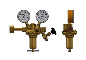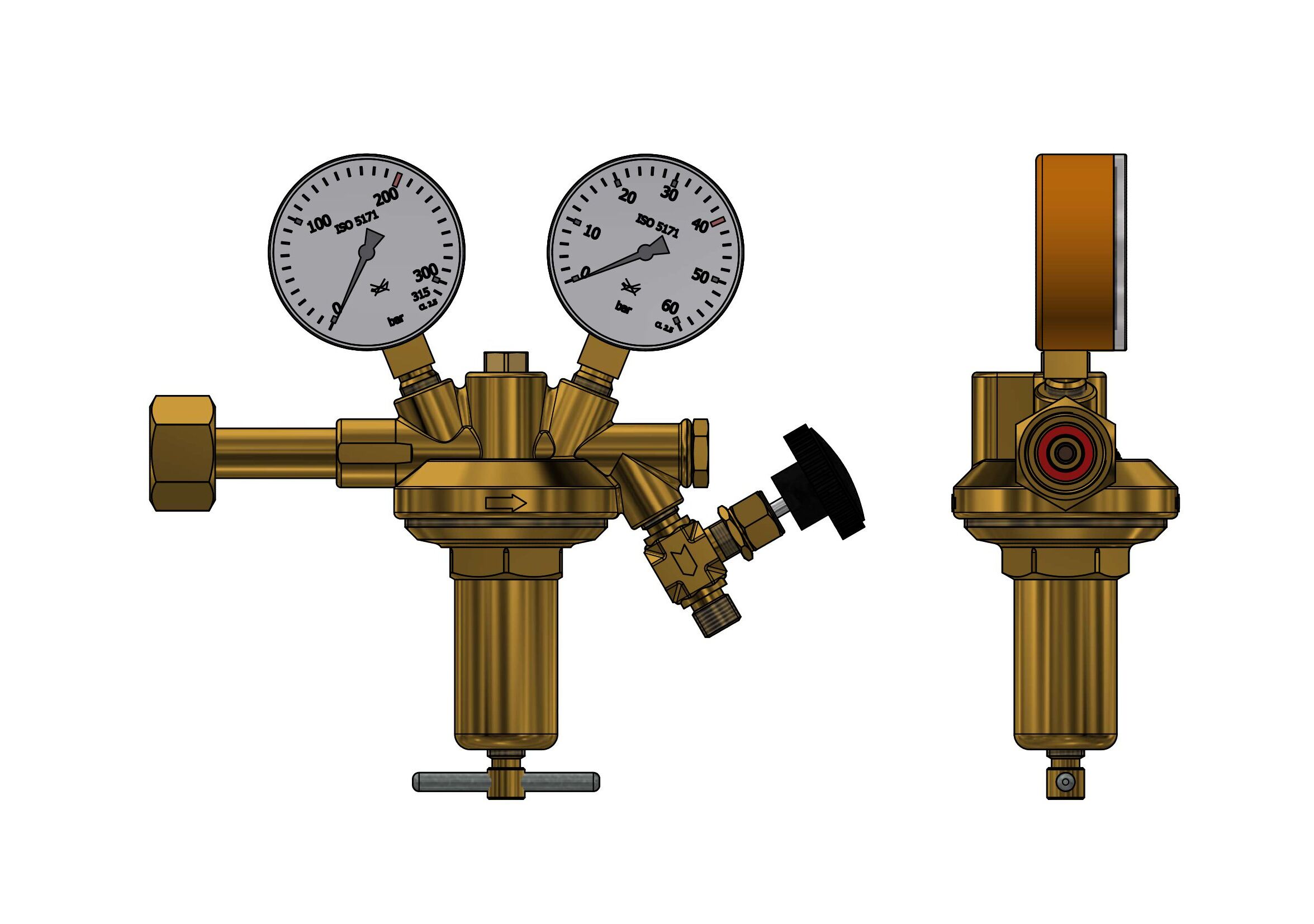 acc to DIN EN ISO 2503, single stage, with high pressure compensation for a constant working pressure on falling inlet pressure, with metal diaphragm, with safety gauges acc. to DIN ISO 5171inlet pressure max:200 bar