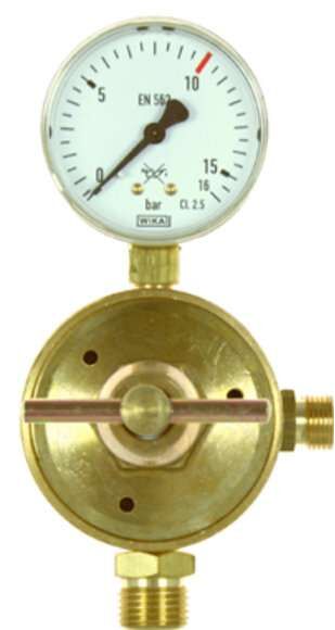 Working pressure reducer Vulkan AD 35 nitrogen 0 - 10 bar for AM 35, single-stage design, with safety pressure gauge according to DIN EN ISO 5171. Maximum inlet pressure: 20 bar. Output pressure: 0 - 10 bar, adjustable. Maximum output: 50 Nm³/h air at 10 bar outlet pressure. Inlet: G1/2" male thread, threaded connection according to DIN EN 560. Outlet: G3/8" male thread, threaded connection according to DIN EN 560. Outlet pressure gauge: 0 - 16/10 bar. Width x Height x Depth: 89 x 166 x 134 mm. This line pressure reducer is available in the following versions: Gas purity/diaphragm: Standard: - for technical gases up to a gas purity of 4.5 with a standard diaphragm. Optional (surcharge): - for pure gases up to a gas purity of 5.0 with a stainless steel diaphragm. SS321 (1.4541)