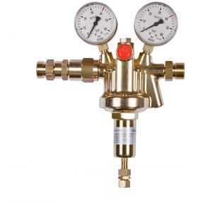 Vulkan LR40 Effect Helium in-line ribbed pressure reducer, 15-40 bar based on ISO 7291, single-stage design, with pre-pressure compensation for constant downstream pressure with falling upstream pressure, with safety gauges according to ISO 5171, with metal diaphragm, maximum inlet pressure: 100 bar, outlet pressure: 15-40 bar, adjustable, maximum output: 280 Nm³/h compressed air at 40 bar downstream pressure. Inlet: external thread G3/4RHak - EN 560, Outlet: external thread G3/4RHak - EN 560, input pressure gauge: 0-160/100 bar, output pressure gauge: 0-60/40 bar, width x height x depth: 220 x 280 x 85 mm. This in-line ribbed pressure reducer is available in the following versions, among others: Gas purity/membrane: Standard: - for technical gases up to a gas purity of 4.5 with standard membrane Optional (surcharge): - for pure gases up to a gas purity of 5.0 with stainless steel membrane SS321 (1.4541) Special outlet screw connection: Standard: - external thread G3/4" RHak on both sides according to EN 560 Options (surcharge): Order number Gas purity/membrane Inlet/outlet screw connection 10664626 for technical gases up to 4.5, with standard membrane on both sides. external thread G3/4" RHak according to EN 560 10664626-6M-6M for technical gases up to 4.5, with standard membrane on both sides. Compression fitting VA 6mm 10664626-8M-8M for technical gases up to 4.5, with standard membrane on both sides. Compression fitting VA 8mm 10664626-10M-15M for technical gases up to 4.5, with standard membrane on both sides. Compression fitting VA 10mm 10664626-12M-15M for technical gases up to 4.5, with standard membrane on both sides. Compression fitting VA 12mm 10664626-15M-15M for technical gases up to 4.5, with standard membrane on both sides. Compression fitting VA 15mm 10664626-18M-18M for technical gases up to 4.5, with standard membrane on both sides. Compression fitting VA 18mm 10664626-MM for pure gases up to 5.0, with metal membrane SS321 (1.4541) on both sides. External thread G3/4" RHak according to EN 560 10664626-MM-6M-6M for pure gases up to 5.0, with metal membrane SS321 (1.4541) on both sides. 6mm stainless steel compression fitting. 10664626-MM-8M-8M for pure gases up to 5.0, with metal membrane SS321 (1.4541) on both sides. 8mm stainless steel compression fitting. 10664626-MM-10M-10M for pure gases up to 5.0, with metal membrane SS321 (1.4541) on both sides. 10mm stainless steel compression fitting. 10664626-MM-12M-12M for pure gases up to 5.0, with metal membrane SS321 (1.4541) on both sides. 12mm stainless steel compression fitting. 10664626-MM-15M-15M for pure gases up to 5.0, with metal diaphragm SS321 (1.4541) on both sides. 15mm stainless steel compression fitting. 10664626-MM-18M-18M for pure gases up to 5.0, with metal diaphragm SS321 (1.4541) on both sides. 18mm stainless steel compression fitting.