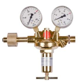 Main pressure reducer Vulkan H40/300 Effect nitrogen DIN 477-5, 0 - 40 bar, 120 Nm?/h according to ISO 7291, single-stage design, with pre-pressure compensation for constant back pressure with falling pre-pressure, with safety pressure gauges according to DIN EN ISO 5171. Maximum inlet pressure: 300 bar. Output pressure: 0 - 40 bar adjustable. Maximum output: 120 Nm?/h at 40 bar back pressure. Inlet: W30x2RH U-nut according to DIN 477-5. Outlet connection: G1/2RHak according to EN 560. Inlet pressure gauge: 0 - 400/300 bar. Outlet pressure gauge: 0 - 60/40 bar. Width x height x depth: 200 x 210 x 75 mm. Important note for 300 bar pressure reducers - please check your bottle connection! Cylinder pressure regulators for 300 bar have a manual connection according to DIN 477 Part 5 and are NOT backward compatible. This means they do NOT fit cylinders with a maximum filling pressure of 200 bar! If necessary, see our following tutorial, 3: Difference between 200 bar and 300 bar pressure regulators. This main pressure reducer is available in the following versions, among others: Gas purity/diaphragm: Standard: - for technical gases up to a gas purity of 4.5 with standard membrane Optional (surcharge): - for pure gases up to a gas purity of 5.0 with stainless steel membrane SS321 (1.4541) Special outlet screw connection: Standard: - G1/2RHak according to EN 560 Options (surcharge): Item number Gas purity Outlet connection 303540 for technical gases up to 4.5, with standard membrane G1/2RHak according to EN 560 303540-800 for technical gases up to 4.5, with standard membrane external thread G1/4" RHk according to EN560 303540-870 for technical gases up to 4.5, with standard membrane external thread G3/8" RHk according to EN 560 303540-6M for technical gases up to 4.5, with standard membrane, compression fitting made of stainless steel 6mm 303540-8M for technical gases up to 4.5, with standard membrane, compression fitting made of stainless steel 8mm 303540-10M for technical gases up to 4.5, with standard membrane, compression fitting made of stainless steel 10mm 303540-12M for technical gases up to 4.5, with standard membrane, compression fitting made of stainless steel 12mm 303540-15M for technical gases up to 4.5, with standard membrane, compression fitting made of stainless steel 15mm 303540-18M for technical gases up to 4.5, with standard membrane, compression fitting made of stainless steel 18mm 303540-MM for pure gases up to 5.0, with metal membrane made of SS321 (1.4541) G1/2RHak according to EN 560 303540-MM-800 for pure gases up to 5.0, with metal membrane SS321 (1.4541) external thread G1/4" RHk according to EN560 303540-MM-870 for pure gases up to 5.0, with metal membrane SS321 (1.4541) external thread G3/8" RHk according to EN 560 303540-MM-6M ​​for pure gases up to 5.0, with metal membrane SS321 (1.4541) compression fitting VA 6mm 303540-MM-8M for pure gases up to 5.0, with metal membrane SS321 (1.4541) compression fitting VA 8mm 303540-MM-10M for pure gases up to 5.0, with metal membrane SS321 (1.4541) compression fitting VA 10mm 303540-MM-12M for pure gases up to 5.0, with metal membrane SS321 (1.4541) compression fitting VA 12mm 303540-MM-15M for pure gases up to 5.0, with metal membrane SS321 (1.4541) compression fitting VA 15mm 303540-MM-18M for pure gases up to 5.0, with metal membrane SS321 (1.4541) compression fitting VA 18mm