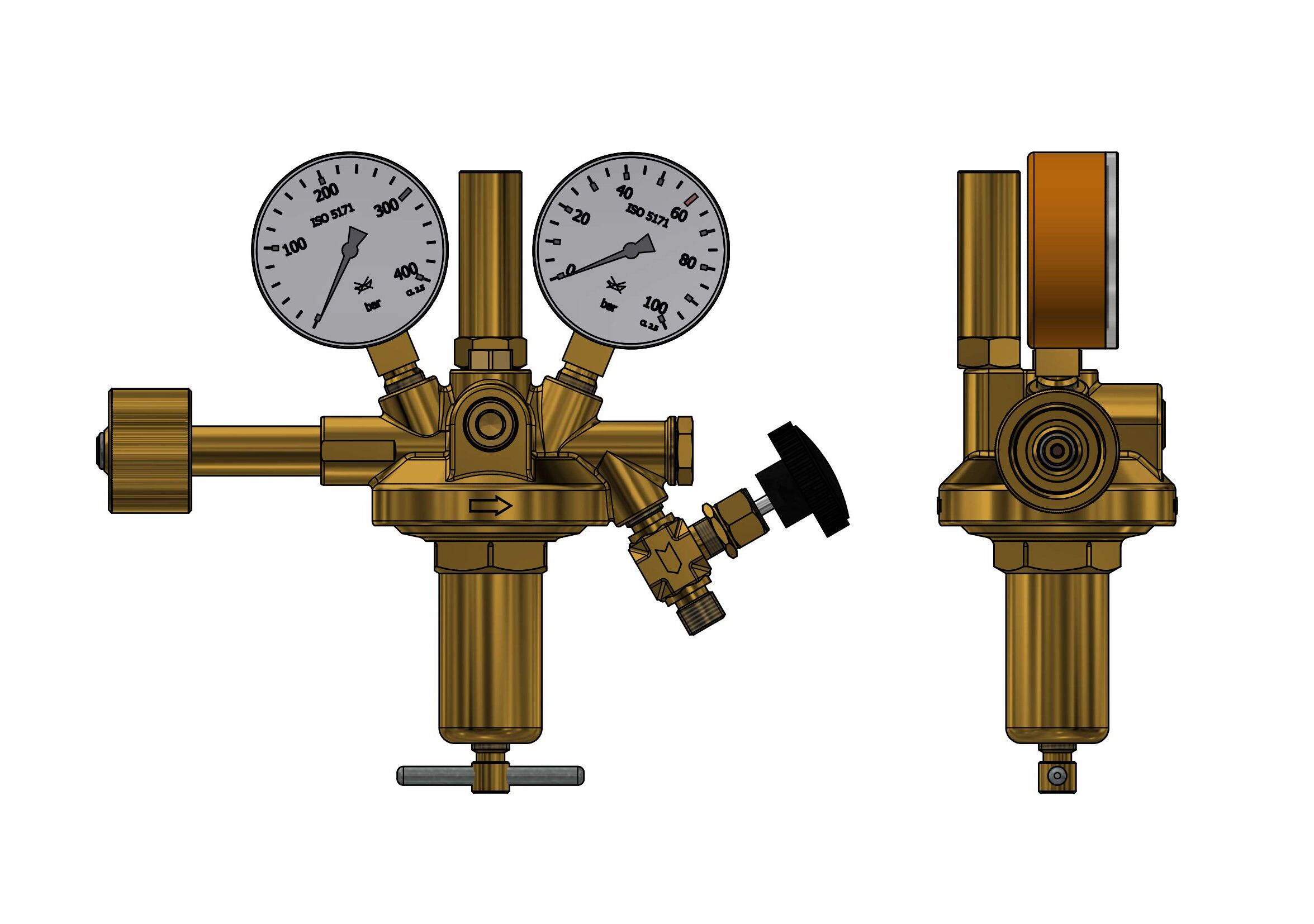 Main pressure reducer Vulkan H40/300 Effect nitrogen DIN 477-5, 0 - 40 bar, 120 Nm?/h according to ISO 7291, single-stage design, with pre-pressure compensation for constant back pressure with falling pre-pressure, with safety pressure gauges according to DIN EN ISO 5171. Maximum inlet pressure: 300 bar. Output pressure: 0 - 40 bar adjustable. Maximum output: 120 Nm?/h at 40 bar back pressure. Inlet: W30x2RH U-nut according to DIN 477-5. Outlet connection: G1/2RHak according to EN 560. Inlet pressure gauge: 0 - 400/300 bar. Outlet pressure gauge: 0 - 60/40 bar. Width x height x depth: 200 x 210 x 75 mm. Important note for 300 bar pressure reducers - please check your bottle connection! Cylinder pressure regulators for 300 bar have a manual connection according to DIN 477 Part 5 and are NOT backward compatible. This means they do NOT fit cylinders with a maximum filling pressure of 200 bar! If necessary, see our following tutorial, 3: Difference between 200 bar and 300 bar pressure regulators. This main pressure reducer is available in the following versions, among others: Gas purity/diaphragm: Standard: - for technical gases up to a gas purity of 4.5 with standard membrane Optional (surcharge): - for pure gases up to a gas purity of 5.0 with stainless steel membrane SS321 (1.4541) Special outlet screw connection: Standard: - G1/2RHak according to EN 560 Options (surcharge): Item number Gas purity Outlet connection 303540 for technical gases up to 4.5, with standard membrane G1/2RHak according to EN 560 303540-800 for technical gases up to 4.5, with standard membrane external thread G1/4" RHk according to EN560 303540-870 for technical gases up to 4.5, with standard membrane external thread G3/8" RHk according to EN 560 303540-6M for technical gases up to 4.5, with standard membrane, compression fitting made of stainless steel 6mm 303540-8M for technical gases up to 4.5, with standard membrane, compression fitting made of stainless steel 8mm 303540-10M for technical gases up to 4.5, with standard membrane, compression fitting made of stainless steel 10mm 303540-12M for technical gases up to 4.5, with standard membrane, compression fitting made of stainless steel 12mm 303540-15M for technical gases up to 4.5, with standard membrane, compression fitting made of stainless steel 15mm 303540-18M for technical gases up to 4.5, with standard membrane, compression fitting made of stainless steel 18mm 303540-MM for pure gases up to 5.0, with metal membrane made of SS321 (1.4541) G1/2RHak according to EN 560 303540-MM-800 for pure gases up to 5.0, with metal membrane SS321 (1.4541) external thread G1/4" RHk according to EN560 303540-MM-870 for pure gases up to 5.0, with metal membrane SS321 (1.4541) external thread G3/8" RHk according to EN 560 303540-MM-6M ​​for pure gases up to 5.0, with metal membrane SS321 (1.4541) compression fitting VA 6mm 303540-MM-8M for pure gases up to 5.0, with metal membrane SS321 (1.4541) compression fitting VA 8mm 303540-MM-10M for pure gases up to 5.0, with metal membrane SS321 (1.4541) compression fitting VA 10mm 303540-MM-12M for pure gases up to 5.0, with metal membrane SS321 (1.4541) compression fitting VA 12mm 303540-MM-15M for pure gases up to 5.0, with metal membrane SS321 (1.4541) compression fitting VA 15mm 303540-MM-18M for pure gases up to 5.0, with metal membrane SS321 (1.4541) compression fitting VA 18mm