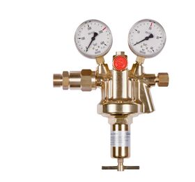 Main ribbed pressure reducer Vulkan HR20/300 Effect Oxygen AM 45 right according to ISO 7291, single-stage design, burnout safety tested according to ISO 7291, with pre-pressure compensation for constant outlet pressure with falling pre-pressure, with safety pressure gauges according to ISO 5171, maximum inlet pressure: 300 bar, outlet pressure: fixed at 20 bar, maximum output: 170 Nm³/h compressed air at 20 bar outlet pressure. Inlet: M 24x1.5 RHak -16S, Outlet: G 1/2 RHk U-nut according to EN 560, input pressure gauge: 0 – 315/200 bar, output pressure gauge: 0 – 40/20 bar, width x height x depth: 240 x 240 x 85 mm *****NOTE***** Replacement pressure reducer for automatic changeover groups AM45, 45K and 45KM. This pressure reducer does NOT fit directly onto a cylinder bundle on the connection side! Please specify the system number when ordering! This main ribbed pressure reducer is available in the following versions, among others: Gas purity/diaphragm: Standard: - for technical gases up to a purity of 4.5 with a standard diaphragm. Optional (surcharge): - for pure gases up to a purity of 5.0 with a stainless steel diaphragm made of SS321 (1.4541).