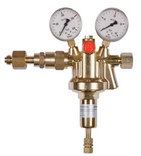 Main fin pressure reducer Vulkan HR20/300 EFFECT oxygen, for EB/BS 80/300 according to ISO 7291, single-stage design, with pre-pressure compensation for constant outlet pressure with falling pre-pressure, burnout safety tested according to ISO 7291, with safety gauges according to ISO 5171, maximum inlet pressure: 300 bar, outlet pressure: 0 - 20 bar adjustable, maximum output: 170 Nm³/h air at 20 bar outlet pressure. Inlet: M24x1.5 RHf U-nut, outlet: G1/2 RHk U-nut according to DIN EN 560, inlet pressure gauge: 0 - 400/300 bar, outlet pressure gauge: 0 - 40/20 bar, width x height x depth: 240 x 240 x 85 mm. *****NOTE***** Replacement pressure reducer for stationary single-bundle systems EB80 and BS80 base stations. This pressure reducer does NOT fit directly onto a cylinder bundle on the connection side! Please specify the system number when ordering! This main ribbed pressure reducer is available in the following versions, among others: Gas purity/diaphragm: Standard: - for technical gases up to a purity of 4.5 with a standard diaphragm. Optional (surcharge): - for pure gases up to a purity of 5.0 with a stainless steel diaphragm made of SS321 (1.4541).