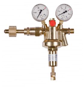Main finned pressure reducer Vulkan HR40/200 EFFECT inert gas, DIN 477-1, 15-40 bar according to ISO 7291, single-stage design, burn-out tested according to ISO 7291, with pre-pressure compensation for constant outlet pressure under all working conditions, with safety pressure gauges according to ISO 5171, max. inlet pressure: 200 bar, outlet pressure: 15 - 40 bar, adjustable, max. output: 290 Nm³/h compressed air at 40 bar outlet pressure. Inlet: W21.8x1/14 RHf U-nut according to DIN 477-1, No. 6, outlet: G1/2 RHak according to EN 560, inlet pressure gauge: 0 - 315/200 bar, outlet pressure gauge: 0 - 60/40 bar, width x height x depth: 240 x 280 x 85 mm. Main ribbed pressure reducer is available in the following versions, among others: Gas purity/diaphragm: Standard: - for technical gases up to a gas purity of 4.5 with standard diaphragm Optional (surcharge): - for pure gases up to a gas purity of 5.0 with stainless steel diaphragm SS321 (1.4541) Special outlet screw connection: Standard: - G1/2RHak according to EN 560 Options (surcharge): Item number Gas purity Outlet connection 206546 for technical gases up to 4.5, with standard diaphragm G1/2RHak according to EN 560 206546-800 for technical gases up to 4.5, with standard diaphragm external thread G1/4" RHk according to EN560 206546-870 for technical gases up to 4.5, with standard diaphragm external thread G3/8" RHk according to EN 560 206546-6M for technical gases up to 4.5, with standard membrane, compression fitting made of stainless steel 6mm 206546-8M for technical gases up to 4.5, with standard membrane, compression fitting made of stainless steel 8mm 206546-10M for technical gases up to 4.5, with standard membrane, compression fitting made of stainless steel 10mm 206546-12M for technical gases up to 4.5, with standard membrane, compression fitting made of stainless steel 12mm 206546-15M for technical gases up to 4.5, with standard membrane, compression fitting made of stainless steel 15mm 206546-18M for technical gases up to 4.5, with standard membrane, compression fitting made of stainless steel 18mm 206546-MM for pure gases up to 5.0, with metal membrane made of SS321 (1.4541) G1/2RHak according to EN 560 206546-MM-800 for pure gases up to 5.0, with metal membrane SS321 (1.4541) external thread G1/4" RHk according to EN560 206546-MM-870 for pure gases up to 5.0, with metal membrane SS321 (1.4541) external thread G3/8" RHk according to EN 560 206546-MM-6M ​​for pure gases up to 5.0, with metal membrane SS321 (1.4541) compression fitting VA 6mm 206546-MM-8M for pure gases up to 5.0, with metal membrane SS321 (1.4541) compression fitting VA 8mm 206546-MM-10M for pure gases up to 5.0, with metal membrane SS321 (1.4541) compression fitting VA 10mm 206546-MM-12M for pure gases up to 5.0, with metal membrane SS321 (1.4541) compression fitting VA 12mm 206546-MM-15M for pure gases up to 5.0, with metal membrane SS321 (1.4541) compression fitting VA 15mm 206546-MM-18M for pure gases up to 5.0, with metal membrane SS321 (1.4541) compression fitting VA 18mm