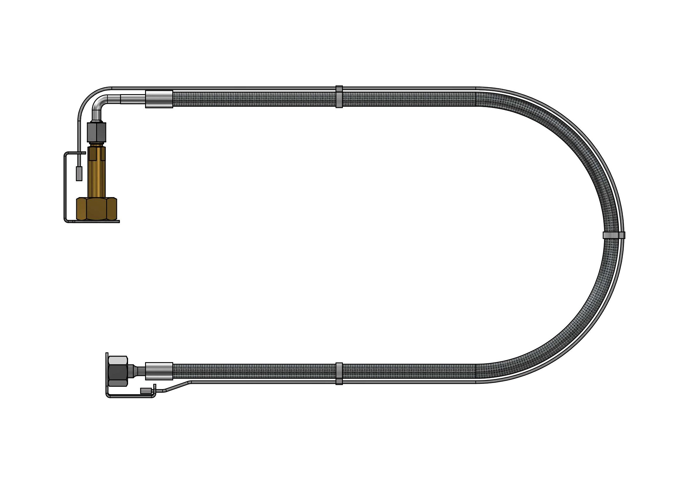 flexible Metall hose with two anti kink springs and anti whip cable assembled complete mounted on hose, length: 1.000 mminlet W24,32x1/14RHf nut acc. to DIN 477-1, No. 10, with 90° angle