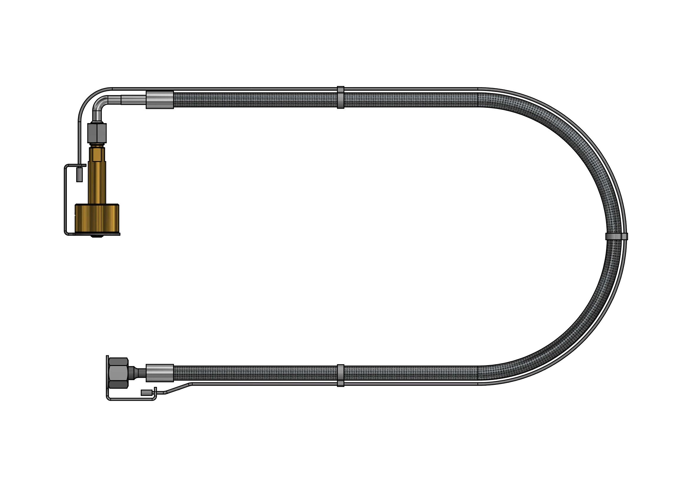 flexible Metall hose with two anti kink springs and anti whip cable assembled complete mounted on hose, length: 1.000 mminlet W30x2RH nut acc. to DIN 477-5, No. 54 inert gas/N2, with 90° angle