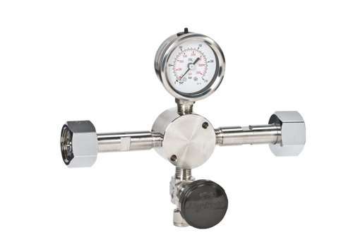 Transfer adapter stainless steel DIN 477-1 No. 1FzF-SS-HD1L-001-PI250-HD1R-001 Stainless steel Gas type: Combustible gases Left and right side gas cylinder connection