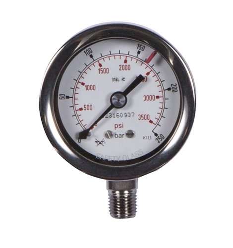 Bourdon tube pressure gauge with reed contact, housing diameter 63 mm and radial connection 1/4 NPT-M at the bottom at 6 o'clock. Housing diameter: 63 mm. Scale: see item selection. Material: stainless steel.