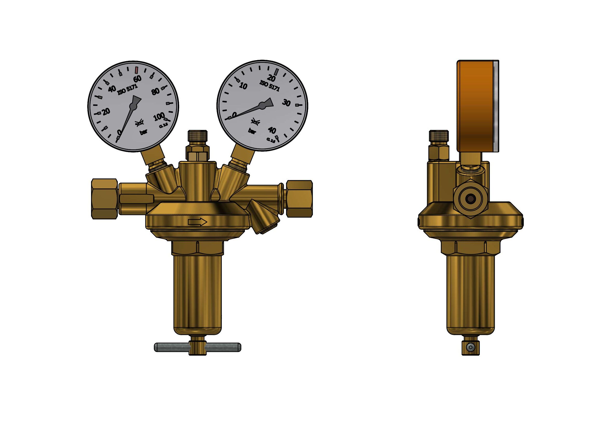 single stage, with safety gauges acc. to ISO 5171inlet pressure max: 60 bar